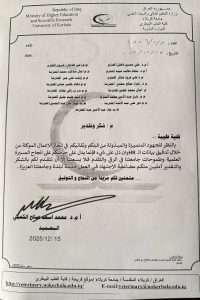 In this context, the Dean of the College of Veterinary Medicine commended the efforts of the working committee, sending a letter of thanks and appreciation to its members in recognition of their role in completing this vital project.