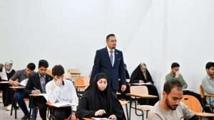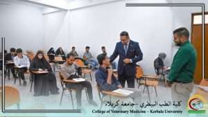In order to ensure the smooth running of the examination process the Dean of the College of Veterinary Medicine, Assistant Professor Dr. Mohammed Asaad Al-Kaabi, conducted a field visit to monitor the progress of the final biology exam for first-year students. The purpose of the visit was to assess the level of organization and the procedures in place within the examination halls.