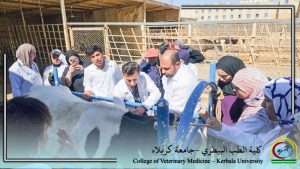 Under the patronage of the Dean of the College of Veterinary Medicine at the University of Kerbala, Assistant Professor Dr. Mohammed Asaad Al-Kaabi, fourth- and fifth-year students carried out a volunteer activity at the Animal Field Unit in cooperation with the Department of Internal and Preventive Veterinary Medicine.